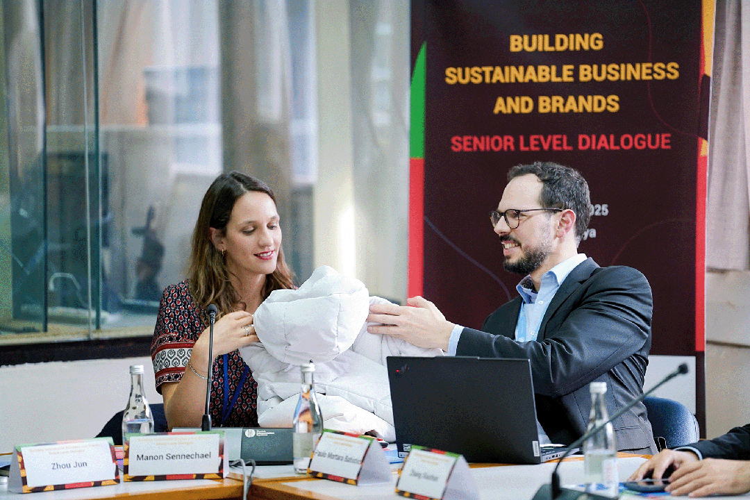 本次論壇是繼2025年9月日內瓦萬國宮對話會后的又一重要國際可持續議程,旨在推動“創建可持續品牌”愿景倡議從理念共識邁向規模化實踐。波司登與寧德時代、京東、隆基綠能等企業共同組成代表性案例的“中國樣本”,向世界傳遞可持續發展的中國方案。波司登作為首批簽署該倡議的中國企業之一,此次攜CIRCULAR 3.0產品實物亮相“創建可持續商業與品牌”高級別對話會,以“從衣服到衣服(G2G)”的閉環循環科技,獲得聯合國官員及國際企業代表的高度認可,展現中國品牌在可持續時尚領域的創新活力。