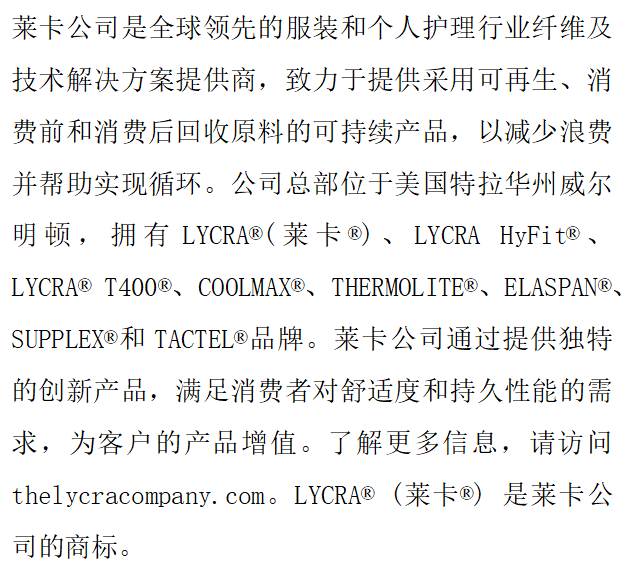 | 萊卡公司宣布可再生萊卡?纖維戰(zhàn)略合作,攜手天虹國(guó)際集團(tuán)推動(dòng)可持續(xù)纖維應(yīng)用邁向新階段 |