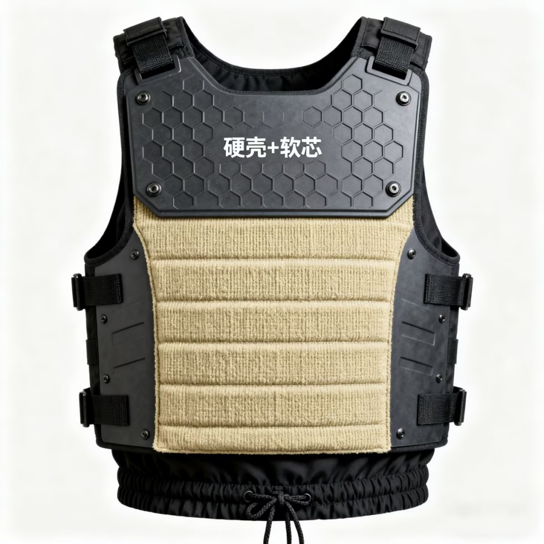 1.復合防彈服(抗步槍子彈):含陶瓷板與軟纖維層。子彈撞擊時,先因陶瓷高硬度被撞碎,無法集中穿透力;接著陶瓷開裂分散大部分能量;最后軟纖維層(如超高分子量聚乙烯)拉伸、斷裂耗光剩余能量,阻止穿透。