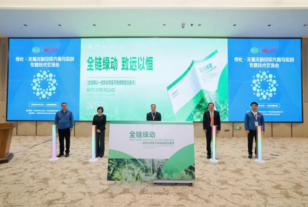 為全面落實國家精準科學治污要求,加強污染物源頭防控,推動全產業鏈協同升級,4月15日下午,“傳化·無氟無酚印染方案與實踐專題技術交流會”在上海成功舉辦。本次會議圍繞無氟無酚助劑與印染新工藝協同適配、生產全流程閉環管控、綠色紡織品市場化價值轉化等現階段多維度核心難題,鏈接專業院校、科研機構、行業組織、紡織企業代表等齊聚一堂展開深度研討,會上同步發布《全鏈綠動-紡織化學品可持續轉型白皮書》,旨在加快推動印染助劑源頭綠色替代,構建產學研用協同、上下游聯動的供應鏈全流程管控體系,破解PFAS與酚類物質替代技術難題,提升行業合規能力與可持續競爭力,助力印染行業低碳綠色轉型。