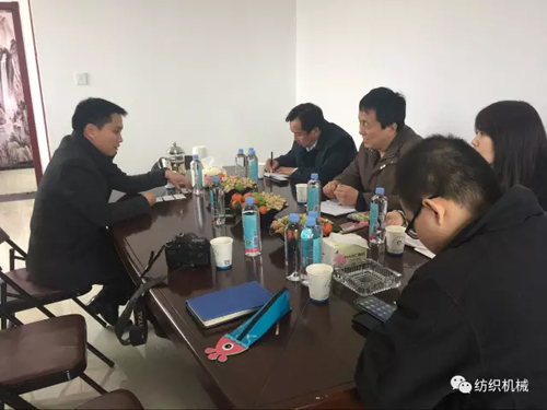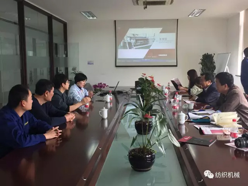 在參觀之后的座談會環節,該公司總經理陳穎嫻及相關負責人向呂洪鋼一行詳細匯報了朝隆紡機業務板塊的經營情況,對朝隆紡機未來的發展規劃進行了闡述,并從企業角度對行業服務和發展提出很多針對性的建議。