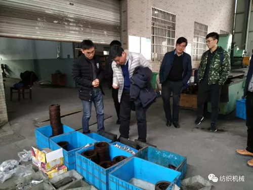期間,調研組一行在朝隆紡機董事長陳連忠等同事的陪同下,在生產車間和加工車間進行了參觀考察。