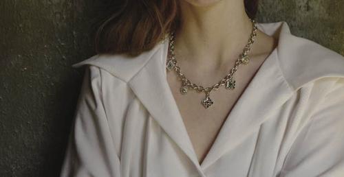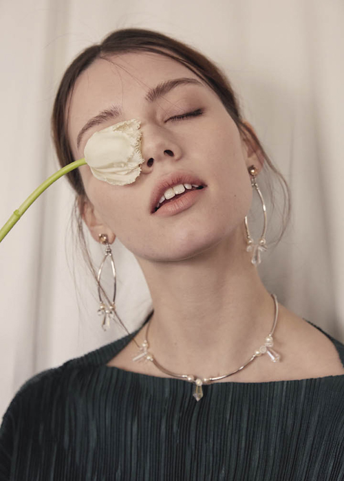 演繹女性美感的吊墜式 雖然中性美正在支配時(shí)尚界,但優(yōu)雅的風(fēng)格同樣支配著女性的愛(ài)美之心。吊墜式的耳環(huán)和項(xiàng)鏈正在演繹女性的極致美。特別是隨著頸部曲線長(zhǎng)長(zhǎng)垂下的吊墜造型,就算搭配超大尺寸的T恤和牛仔褲,也絲毫不影響女性魅力的散發(fā)。Numbering品牌本季就推出了更厚重、更華麗的吊墜式水晶耳環(huán),并獲得了強(qiáng)烈反響。搭配復(fù)古款式的水晶,這款耳環(huán)無(wú)論是在休閑風(fēng)格還是白領(lǐng)風(fēng)格的搭配中都無(wú)疑是亮點(diǎn)。 如果你喜歡穿著柔軟面料的襯衫或碎花裙,那么可以關(guān)注Mathias品牌的白色大花朵耳環(huán),這款垂落感的橢圓形耳環(huán)底端鑲嵌著如同花瓣般的水晶和珍珠,更將女性魅力發(fā)揮到極致。