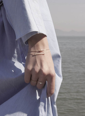 貝殼、不規(guī)則珍珠散發(fā)獨(dú)特魅力 以新穎素材散發(fā)獨(dú)特魅力的珠寶,讓人無(wú)法移開(kāi)視線。本季最吸引眼球的素材是不規(guī)則的珍珠、貝殼和未加工的鉆石等,純天然的狀態(tài)別有一番滋味。 Another Planet品牌本季推出了度假少女系列產(chǎn)品。其中最受好評(píng)的是“午睡耳環(huán)”,這款產(chǎn)品的特點(diǎn)是用最少的人工介入,展現(xiàn)不規(guī)則珍珠的自然魅力。 Mathias和Picoment品牌則采用貝殼演繹女性優(yōu)雅魅力。Mathias的gold shell long necklace系列在金色的繩子上掛上白色的貝殼,并在銜接處配上精致的水晶,以確保項(xiàng)鏈造型的完成度。 Picoment品牌的貝殼耳環(huán)則是在不定型的外環(huán)里放上貝殼,并在耳環(huán)上點(diǎn)綴未加工的鉆石,使整體造型閃閃發(fā)亮。