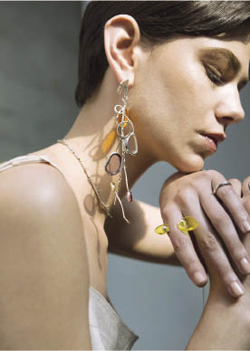 醒目的大尺寸珠寶盛行 有句俗話說(shuō)得好,流行趨勢(shì)總是循環(huán)的。上世紀(jì)90年代,代表著華麗風(fēng)格的“公交把手”大耳環(huán),如今隨著潮牌的推崇,再次占領(lǐng)了配飾市場(chǎng)。每一季似乎都要增大一圈的耳環(huán)尺寸,如今已經(jīng)可以和手掌的寬度媲美。佩戴一對(duì)這樣的大耳環(huán),或者用小耳環(huán)與之形成不對(duì)稱之美,不失為一個(gè)時(shí)尚好選擇。 著力于改變耳環(huán)形態(tài)的Aitch Aren和swing stick earing品牌,剛一面世就收到了不俗的反響。在圓環(huán)上添加各種長(zhǎng)度的小棍、根據(jù)心情演繹不同的搭配,成為了品牌的賣點(diǎn)。 Picoment品牌本季則推出了更具粗獷結(jié)構(gòu)的系列產(chǎn)品。如同蠟油流動(dòng)一般演繹動(dòng)人曲線美的picoment系列,以其獨(dú)特的外觀,獲得了國(guó)內(nèi)外買手的青睞。