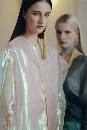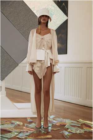HUI 2019春夏系列 精細(xì)的斜裁,隨性的折疊手法,錯綜復(fù)雜的刺繡以及細(xì)致的縫繡,呈現(xiàn)出代表著展現(xiàn)著過去與未來對未來神秘探索的全新系列。
