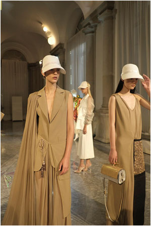 HUI 米蘭時裝周2019春夏系列presentation展覽 在新品發(fā)布中,趙卉洲以中國古代的書法字畫作為東方文化的靈感碎片,傳承HUI的品牌精神,繼以廓形運(yùn)用作為西方文化的載體,重新編寫一出現(xiàn)代美學(xué)的新時序,每一件衣裳都令人回味無窮。