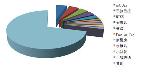 童裝 根據中華全國商業信息中心的統計,2016年6月份全國重點大型零售企業童裝銷售前十位品牌市場綜合占有率合計為28.82%,前三位依次是阿迪達斯、巴拉巴拉和耐克。 童裝銷售前十名品牌
