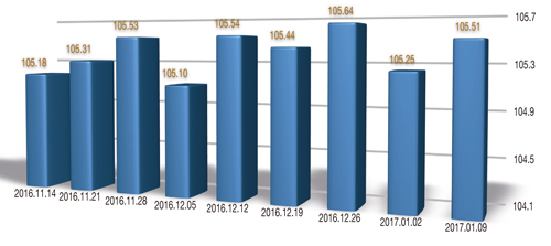 “中國·柯橋紡織指數” 20170109期紡織品價格指數收報于105.51點,環比上漲0.25%,較年初上漲0.25%,同比上漲1.30%。 總價格指數
