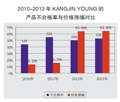 代理商自檢 品牌商拒負責 趙云虎表示,近年來,面對漸趨嚴重的KANGJIN YOUNG質量問題,可派一方面主動開啟了品質清理自檢行動并委托第三方檢測機構做品質檢測,對可派旗下的一百多個品牌進行了全面的質量清理活動,其中忍受割臂之痛關閉了某國際著名女裝品牌12家店鋪。同期依據法律和經銷協議積極與品牌方韓國跨國集團SKn商談相關品質問題,無數次地向SK提醒并推動其對品質的關注。 2010~2013年間,可派發出的關于質量問題的反饋文件就達60多份,每年的反饋函件近20封。然而,SKn未對質量問題采取任何有實質性的方案和舉措,始終給予冷漠對待和毫無理由的推脫,最終無任何說法。直到2個月前,在雙方合約即將到期之際,SKn才勉強接受召回部分商品的要求。 不僅如此,在商品質量嚴重下滑的情況下,SKn還大幅提高了KANGJIN YOUNG在中國的銷售價格,自2009年起,KANGJIN YOUNG的售價較上年增長13.2%、15.7%、63.6%、及2013年的64.4%。 趙云虎表示,嚴重的質量問題和SKn公司面對質量問題不負責任的態度和立場,讓可派從KANGJIN YOUNG品牌的貢獻者、熱愛者變成了批判者。