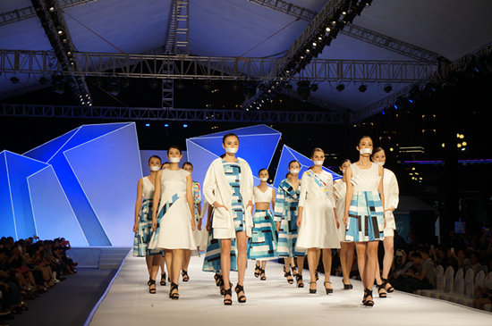 當天晚上壓軸出場是石獅市服裝設計師協會帶來設計師聯合發布秀。在顏色、面料、材質的運用上整體水平都較高,線條不斷重合、疊加,呈現出了空間的變化、延伸,參與發布的四位設計師中,許馨尹的晚禮服系列還加入了童模表現,在他們上臺的那一刻更是贏得了全場歡呼。與此同時,這場秀還可以看到設計師們試圖以平面與空間的視覺效果,增加服裝在模特身體上的玩味感。可以說,石獅市服裝設計師協會為自信獨立的當代女性奉獻出了一季美妙的作品。