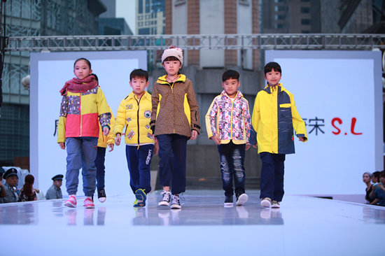 第三場發布秀也是一場童裝秀,由唐宋S.L童裝品牌擔綱發布。在本場秀中,設計師抓住了少年兒童熱愛大自然、親近大自然的特點,設計了一系列的沖鋒衣、兒童雨衣、皮膚風衣產品。發布會現場,背著小背包的小模特們用自由輕快的步伐詮釋了唐宋S.L童裝自由、健康、隨性、有趣的產品風格。在看完秀后,現場有不少觀眾對他們的產品紛紛“點贊”,甚至還有人以為這場秀是《爸爸去哪兒》的重慶時裝周版?!?/font>