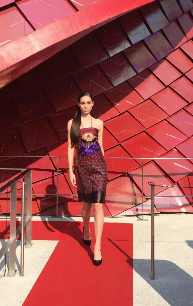 帶有強烈中國服飾文化元素及意式裁剪的時裝與萬科館盤龍為靈感的外形、以及用中國傳統工藝燒制而成的中國紅龍鱗相得益彰。得到了在場嘉賓IED歐洲設計學院米蘭時裝學院院長等一行;MIP米蘭理工大學教育首席執行官等一行;以及中國住米蘭總領事館兩位副總領事的高度美譽。