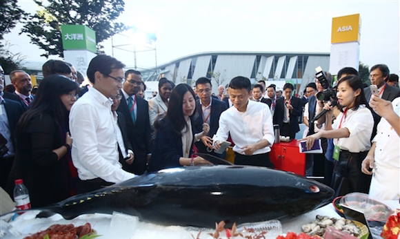 今年的電商大戰似乎比以往火藥味更濃,曾經各自為營的互聯網巨頭們開始強強聯手,從阿里巴巴拉上蘇寧宣布“平京戰役”,到京東騰訊聯手推出“品商計劃”,再看看朋友圈中不斷刷屏的“XX紅包分享就送”、“雙十一血拼攻略”,電商品牌之間的混戰早已吹響了號角。 從前期的推廣方式來看,天貓淘寶、京東、蘇寧,幾家公司也不再把“價格戰”當作唯一的噱頭。不論是溫情滿滿的廣告視頻;還是通過挑釁式舉動引起的熱點話題,“雙十一”前夕各大電商的營銷事件如同重頭戲之前的暖場節目,讓這個曾經凄涼的光棍節變得熱熱鬧鬧。 天貓淘寶篇為了推生鮮電商 馬云花38888元請員工吃了頓金槍魚10月13日,阿里巴巴在杭州西溪園區正式舉行了2015年雙十一啟動儀式,儀式中馬云拍下了天貓生鮮電商的第一單——一條重達68公斤的藍鰭金槍魚。據說當天在阿里巴巴的公司食堂里,這條標價38888元的日產金槍魚成了員工們口中的美味。