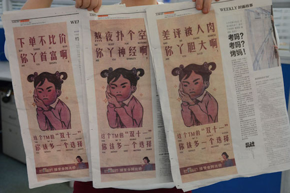 而在11月4日,天貓官方又發布了一支略帶魔性的最新廣告,你可以在視頻中看到無數與“四個1”有關的數字組合,比如四個身背火箭噴射包的飛行員、四只腳、四只放進烤箱的龍蝦、四個廚師、模仿披頭士《Abbey Road》封面的四個人、一塊“TM1111”的車牌…… 影片里幾乎沒有一句對白,也沒有任何與天貓“雙十一”有關的形象標志,但各種象征性的“四個1”能讓觀眾很容易聯想到“雙十一”。在成立七年以后,天貓對“雙十一”形象已經擁有了足夠的自信,而在廣告中多處啟用的外籍演員、海外商品,也透露出天貓在此次雙十一活動中將朝著國際化平臺的方向發展。 “今年天貓主打的是全球化和品牌化,因為雙十一已經成立了七年,我們不希望消費者繼續以低廉的價格為購物導向,所以會找很多大品牌來合作。”一位天貓市場部的相關人士說道。 京東和蘇寧篇用“互黑”博取眼球之所以把這兩家放在一起,一方面是相對于天貓財大氣粗的創意不斷的“頭條”事件相比,京東與蘇寧的表現顯得稍許平庸,而另一方面這兩家也不斷“互黑”的方式博取人們的眼球。 不論是10月18日蘇寧云商集團COO侯恩龍在微博上發出的“平京戰役”,還是11月3日京東一紙訴狀向工商局舉報阿里巴巴擾亂電子商務市場,這些“虛晃一槍”的做法并無實際作用,但蘇寧與京東似乎都想借助話題營銷搶奪阿里的風頭。 其實在2014年的雙十一前夕,蘇寧易購就選擇了“互黑”的方式策劃了一場“打臉營銷”,其在戶外、平面媒體上投放多條廣告,利用網絡經典圖片將矛頭直指天貓促銷活動在下單、庫存、物流等操作過程中的弊端。