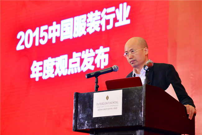 廣州市例外服飾有限公司董事長毛繼鴻 會上,東華大學教授聞力生、廣州市例外服飾有限公司董事長毛繼鴻、深圳歌力思服飾股份有限公司董事長夏國新、北京愛慕內衣有限公司董事長張榮明分別圍繞智能制造、美與技術、資本融合、跨界營銷話題,發布2015中國服裝行業年度觀點。