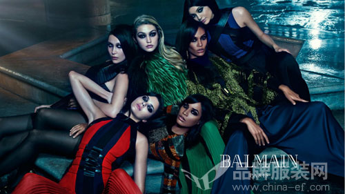 調(diào)皮的Alexander Wang這一次動(dòng)用了私交——壞姑娘俱樂(lè)部。在這一季的廣告大片中,你能一次性看到Lexi Boling、Binx Walton和Hanne Gaby Odiele。一群女孩侵略性的眼神倒是和主題相襯。 Balmain 2015秋冬