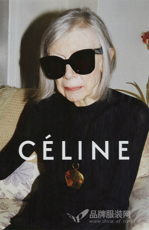 Céline應(yīng)該算是今年年度時(shí)尚和流行文化方面最佳的廣告打造品牌了。Céline請(qǐng)來(lái)了年屆80的美國(guó)小說(shuō)家Joan Didion,只是為了針對(duì)年齡更偏成熟的顧客。也許,一位知性?xún)?yōu)雅且久經(jīng)風(fēng)霜的女作家,更能打動(dòng)消費(fèi)者。 Céline 2015秋冬