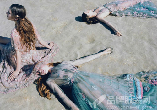 帶著夢(mèng)幻色彩的廣告,更像是一組文藝片。受美人魚(yú)啟發(fā)的廣告有著夢(mèng)幻而柔和的色調(diào),Maartje Verhoef、Grace Simmons、Hedvig Palm、Vanessa Moody和Clementine Deraedt身處清淡柔和的海岸邊,無(wú)論是服裝色調(diào)還是布景都充滿魔幻氛圍。 |