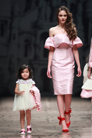 在本季中國國際時裝周的46場專場發布中,許馨尹獨占了四個專場,在中國國際時裝周的歷史上,還從來沒有一個設計師在單季發布中完成4場個人專場發布會。如果一切順利,未來三天,將成為許馨尹職業生涯、乃至生命中重要的日子,她有望成為中國時裝界的“秀場女王”。 親子系列發布在本季時裝周上是一大熱門,想要在品牌林立的秀場上給人們留下點念想,設計師必須找到和自家品牌屬性吻合的創作思路。 在這場發布會的開頭和結尾處,執導本場發布的導演、“模特教父”張艦也進行了精心設計,專門把設計師許馨尹和女兒在日常生活中的兩段對話進行“原音重現”,這種充滿愛意和真實情緒的場景,成了本場發布的一大亮點。當然,創意背后反應的恰恰是設計師許馨尹對Vicky Zhang品牌定位的清晰認知。 事實上,每一場發布會都有一些隱藏的細節值得挖掘,但遺憾的是,這些細節背后的東西很容易被人忽略,而這些東西又往往是設計師想要表達的核心理念。本季Vicky Zhang的設計主題是“回歸”,創作靈感來源于許馨尹童年生活的真實場景。 許馨尹說,Vicky Zhang品牌是她從小就埋藏在心底深處的少女夢,一直以來,她都小心翼翼地保護著這個夢想。“在陪伴女兒Vicky成長的過程中,我認識到作品是我們‘回歸童年’的最好方式,童年可以讓幸福變得很簡單”。 在風格上,本場發布的作品延續了Vicky Zhang品牌的貴族氣質;在設計上,設計師的思路緊扣親子呼應關系,成人裝使用的蕾絲、提花、圖案紋樣、甚至細節處的線條脈絡和童裝都有非常直觀的對應關系,包括童裝部分的小禮服、公主裝、水晶鞋、小西裝、小皮衣的色彩使用方案亦是如此。 要理解許馨尹的這種設計,也許只有穿上Vicky Zhang的衣服后,才會真正體會到它的內涵:從母親的審美視覺出發,為孩子打造的、全新的“小大人”形象。這場秀反應得最具特點的便是在女兒的形象塑造上,母親的喜好與品位很容易影響女兒,因此,你可以看到許馨尹的親子裝在童裝的部分有了豐富多元的創作空間,配合母親著裝的色彩,打破常規,展現華麗和與眾不同。 在許馨尹看來,Vicky Zhang的設計訴求是為母親和孩子提供一周7天的完美著裝方案,不論是工作、還是生活,都是為在不同的場景和時段營造美感和親子氛圍。中國國際時裝周上的作品發布,展示的是Vicky Zhang原創設計能力的冰山一角。
