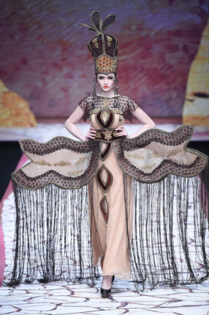中國服裝設(shè)計師協(xié)會副主席兼秘書長張慶輝表示,設(shè)計師陶陶的作品以國際化的著裝設(shè)計,表達出中國民族特色服裝的理念值得肯定,作為一個從新疆成長起來的設(shè)計師,非常不容易,正是他們的存在,讓新疆這塊新的紡織服裝熱土快速成長。 陶陶在接受《紡織服裝周刊》記者采訪時表示,在她眼里,新疆的服裝不僅是民族的,更是世界的,就像這次以雅丹地貌為設(shè)計靈感來源一樣,天賜的雅丹世稱魔鬼城,是最全面的地質(zhì)資料寶庫。“在繁榮的絲綢古道上,它是一個最大的天然路標,我希望以此傳達給人民新疆蘊含的神秘資源和天然景色,在服裝表現(xiàn)手法上,特有的圖騰造型模仿大自然的形象,大膽的簡線條設(shè)計,在服裝配飾上運用了例如駝鈴、馬鞍、馬蹄等西域元素,描繪了新疆人民質(zhì)樸自然的生活理念和講究個性的著衣理念。”陶陶如是說。 據(jù)悉,本次發(fā)布之后,設(shè)計師陶陶還計劃參加10月份舉辦的中國國際時裝周,她感慨道,在“一帶一路”背景下,新疆政府對產(chǎn)業(yè)給予了很大的支持,她的事業(yè)得到了各項政策的切實幫助,作為一名了解新疆文化和生活的本土設(shè)計師,她將為推動新疆民族服飾設(shè)計進步,貢獻更多的力量。