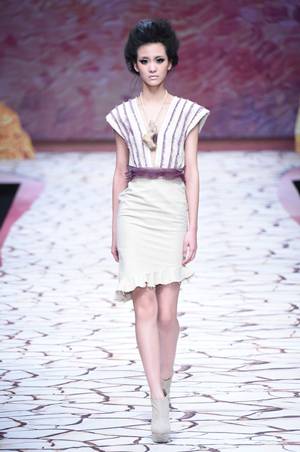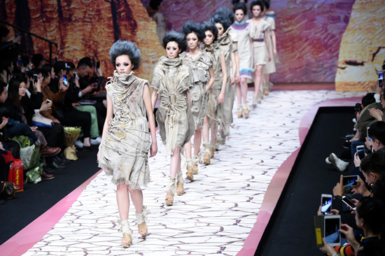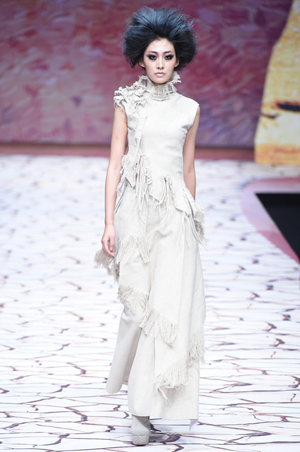3月27日晚,新疆本土設(shè)計師陶陶帶著她的新一季作品“雅丹·垚”登陸梅賽德斯-奔馳中國國際時裝周,在751 D·PARK中央大廳為業(yè)界呈現(xiàn)了一場極具西域風(fēng)情的誠意大秀。 與兩年前初次登陸中國國際時裝周的作品“樓蘭·爻”不同,本次的作品設(shè)計靈感來源于新疆獨有的雅丹地貌,又名風(fēng)蝕脊(Yardang),是一種典型的風(fēng)蝕性地貌,延續(xù)使用亞麻面料的樸實質(zhì)感表現(xiàn)設(shè)計主題及靈感,運用抽紗來表達雅丹紋理的柔美,采用褶皺面料呈現(xiàn)雅丹雄渾的壯美。新作風(fēng)格包含流蘇、纏繞、粗糙、叛逆、自由、隨意等元素。