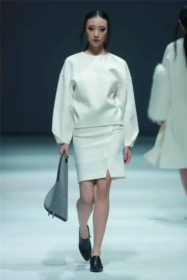 顏色方面,主打的白色、灰色系顯得簡潔明快、干凈利落。這一季設計將立體剪裁技術演繹在羊絨雙面呢等不同的冬天厚重的材質上,給穿著者適度的合體修身,做到寬松不臃腫,收身不緊裹的裁剪效果。在三組不同材質的面料上,還可以看到高清3D印花,與此同時,設計師還用了利步瑞的無縫360度拼接技術,服裝的完整性得以充分呈現。 在本季發布的作品中,手袋設計師劉盛毅的作品也極具看點,本場發布所有手袋均由他本人結合郝佳的設計主題元素親自打造。據了解,劉盛毅本人從小就喜歡研究幾何體,對結構感有異于常人的理解力。他的產品正是以結構美學和數據分析來展現在公眾面前。從設計上看,這一點和郝佳的時裝設計恰好可以無縫對接。