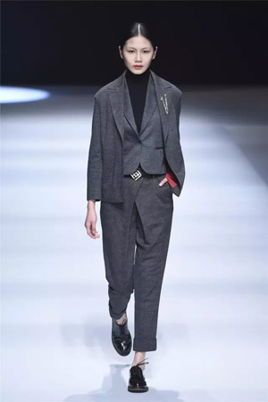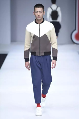 本場(chǎng)發(fā)布的RX品牌,由許馨尹與著名演員任重合作推出(R代表任重,X代表許馨尹),聚焦設(shè)計(jì)師+明星跨界合作模式,產(chǎn)品風(fēng)格上則定位“微潮”。 在裁剪廓形上,本季作品遵循寬松自由的風(fēng)格。在面料選擇上,主要偏重功能和舒適的面料,在選用防皺面料的同時(shí),也考慮了功能性、舒適度,質(zhì)感柔軟、伸縮性較大、透氣、吸汗,滿足暖男們可居家、可外出穿著的需求。
