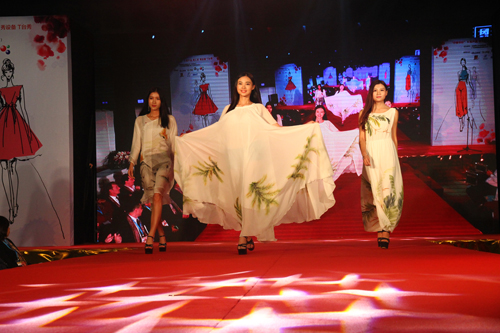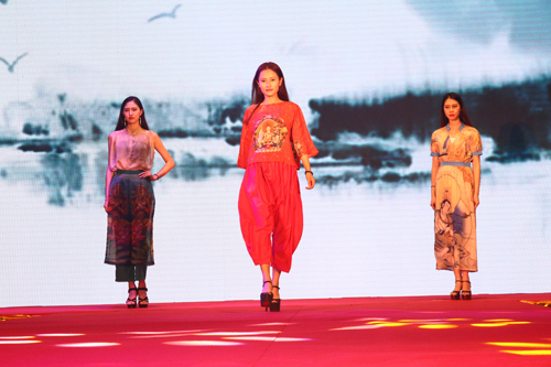 據介紹,原色數碼2017春夏流行花型秀以“源”、“色”、“花”、“海”為主題。“源”,素衣長裙的少女,在江浙民間音樂伴奏下婆娑起舞,上下求索,追溯企業發展源頭;“色”,各種彩色衫裙,印花圖案如潑墨重彩,清水出芙蓉般甜美清新,盡顯中國風,國際范;“花”,花卉爛漫、風格各異,在濃淡相宜的西子湖畔,宜景怡情,別樣的活潑艷麗;“海”,以佛教文化圖案為主,襟衫飄飄、長歌曼舞,展現雍容華貴寬廣大氣。通過系列主題的動態走秀,不僅向現場觀眾直觀有效傳達了2017春夏流行花型的趨勢,而且也讓其深刻感受到了數碼印花的魅力。尤其是走秀現場,與會領導攜手身著原色數碼成衣的模特同臺走秀,更是將整個走秀活動推向了高潮。
