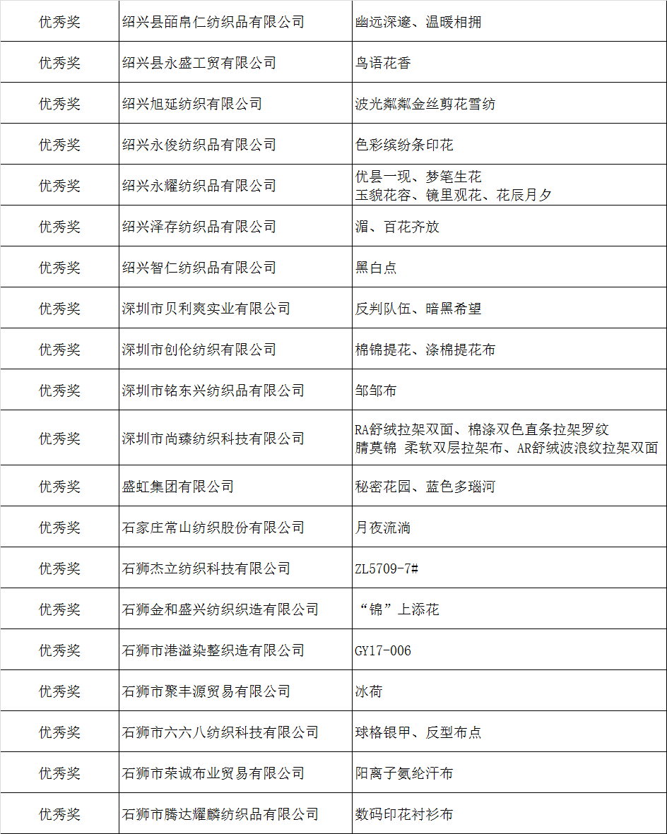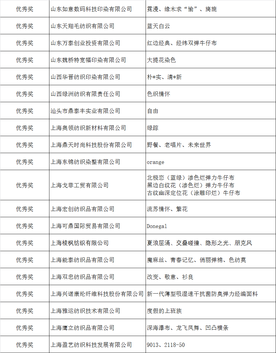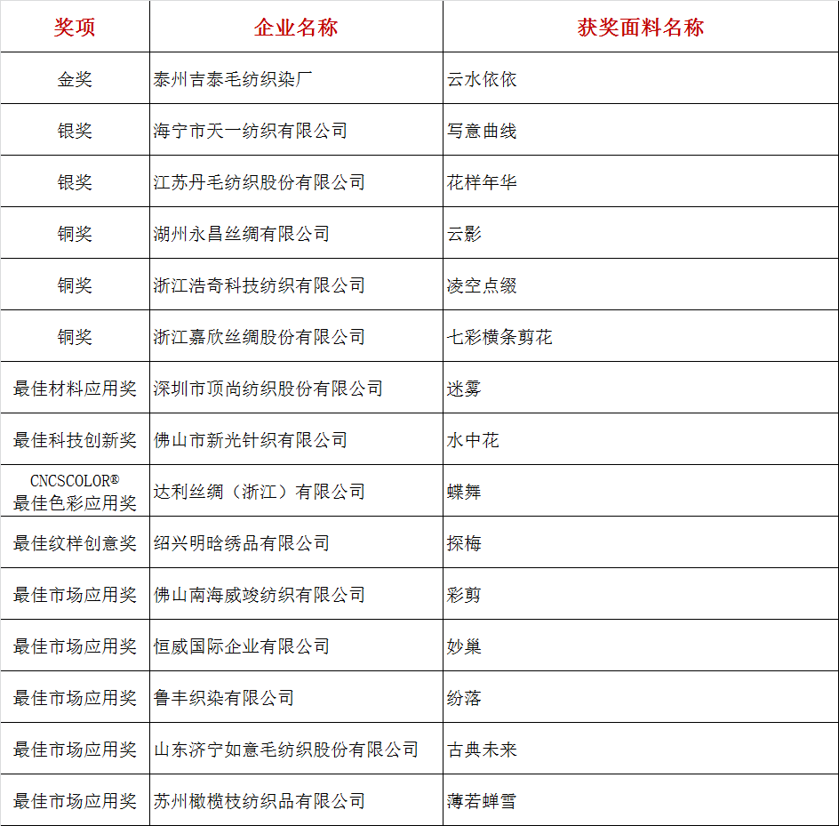 第37屆(2018春夏)中國流行面料入圍評審獲獎名單出爐!