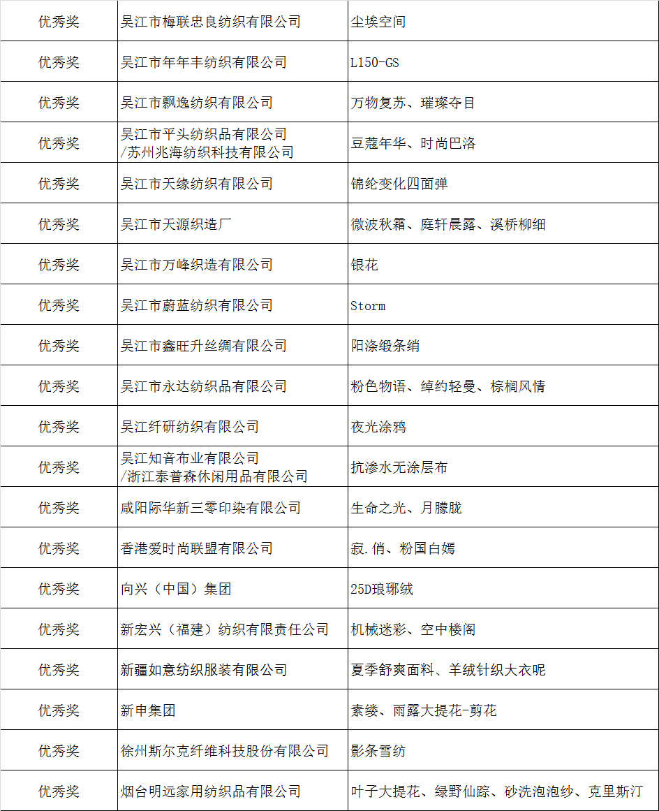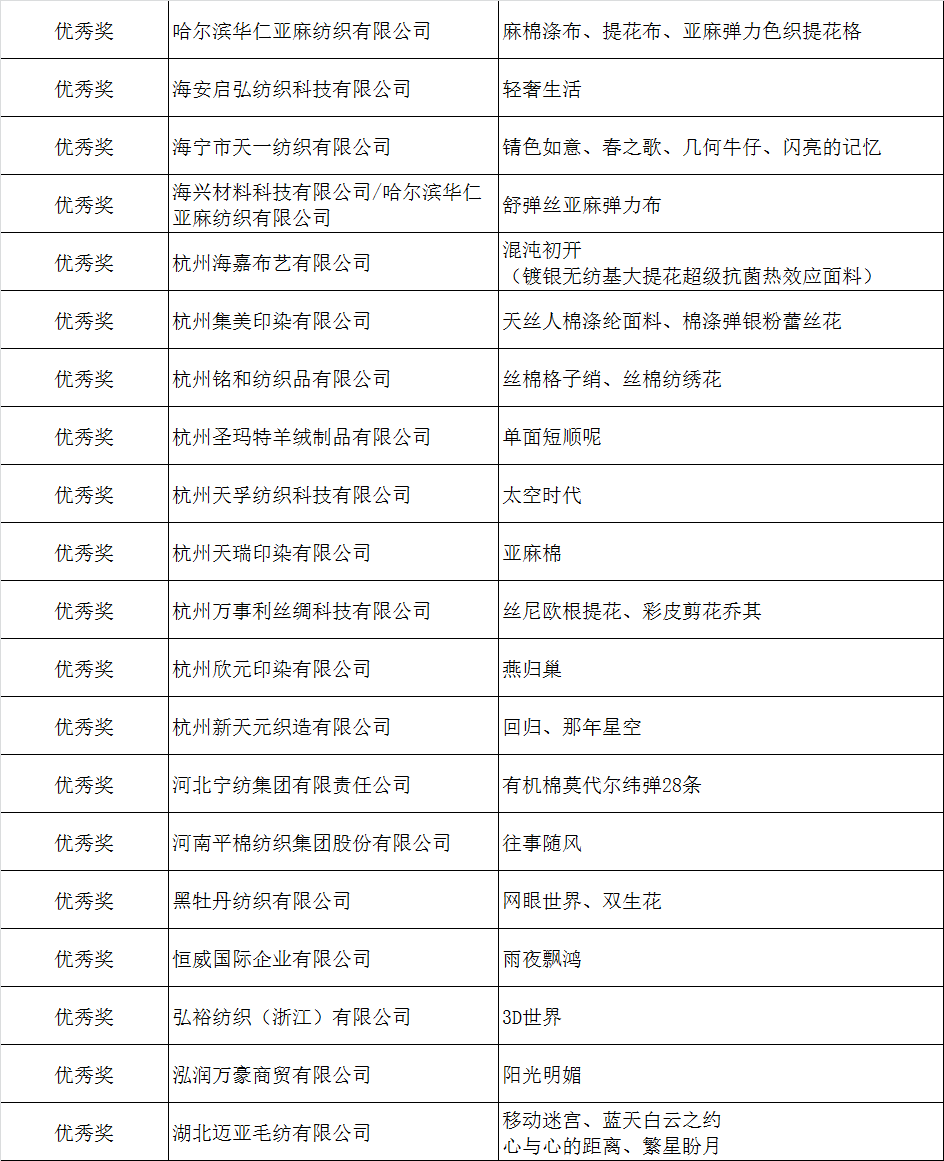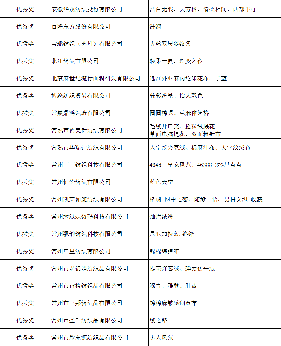 第37屆(2018春夏)中國流行面料入圍評審獲獎名單出爐!