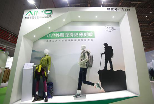 Aika愛(ài)家科技本次帶來(lái)的展廳以“未來(lái)已來(lái),石墨烯智能服飾新主張”為主題。Aika愛(ài)家科技定制以 “石墨烯+智能+大數(shù)據(jù)”為一體的專業(yè)化整體解決方案,并以此為核心不斷迭代升級(jí),本次展出在該核心的基礎(chǔ)上,精準(zhǔn)化細(xì)分機(jī)車服、登山服、戶外服、時(shí)裝、特種工服、褲裝、家居家紡等細(xì)分品類解決方案。每一個(gè)品類的解決方案都結(jié)合產(chǎn)品特色和市場(chǎng)細(xì)分區(qū)隔化定制。