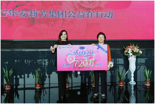 9月22日下午,安莉芳藍絲帶慈善捐贈儀式在安莉芳山東工業園舉行。在現代化的安莉芳山東工業園智能倉內,一場以“感恩·同行”為主題的藍絲帶慈善活動,正透過秋日暖陽,訴說著感恩與愛意?;顒蝇F場,安莉芳集團向中國婦女發展基金會捐贈720萬元愛心物資,這是安莉芳集團第11年來堅持對中國女性慈善事業的踐行與表達。