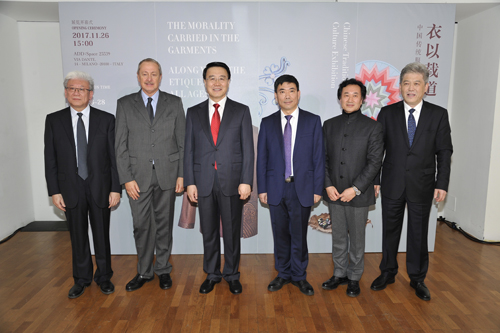 由北京市政協(xié)主辦、北京服裝學(xué)院參與承辦的“衣以載道,禮傳古今”中國(guó)傳統(tǒng)服飾文化展,于意大利當(dāng)?shù)貢r(shí)間11月26日下午在米蘭但丁街14號(hào)舉行開幕儀式。北京市政協(xié)代表團(tuán)和意大利米蘭政府官員、中國(guó)駐米蘭總領(lǐng)事館、當(dāng)?shù)厝A人華僑、文化界人士、媒體界朋友出席開幕儀式。