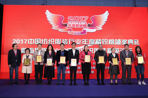 3月14日,中國紡織工業(yè)聯(lián)合會春季聯(lián)展開幕首日,“2017中國紡織服裝行業(yè)年度精銳榜頒獎典禮在上海國家會展中心1號館CHIC TALK區(qū)舉行。