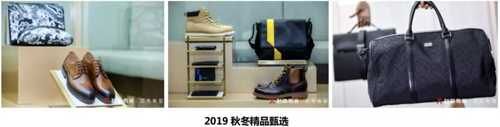 2019秋冬新商務系列秉承一貫的高階定位,打造精致考究但絕非傳統的男士形象。高品質面料與考究的紋理細節展示身份象征,不規則的格紋圖案與超現實的印花作為本季主角以定位、滿印、繡花、印繡等不同工藝相互貫通。汲取當下流行色彩中的經典黑,靛藍色與綠松石藍彰顯沉穩,大膽融入蜜桔色、冰川灰與光紫色讓商務著裝告別單調。尊貴奢華的皮毛一體翻領茄克,極具質感羊絨、毛呢大衣,輕薄蓄熱的K-WARM 3D薄暖智造科技產品,精致典雅的套西服無疑為本季亮點。