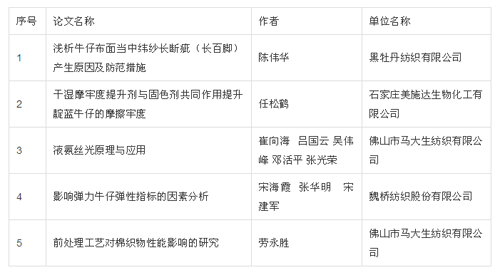隨后,會議公布了“2019年度中國牛仔技術論文優秀論文”和“2019年優秀牛仔面料”名單。共有來自黑牡丹紡織有限公司等5家企業榮獲了“2019年度中國牛仔技術論文優秀論文”;共有來自23家企業的141款優秀牛仔面料產品獲得了“2019年優秀牛仔面料”。