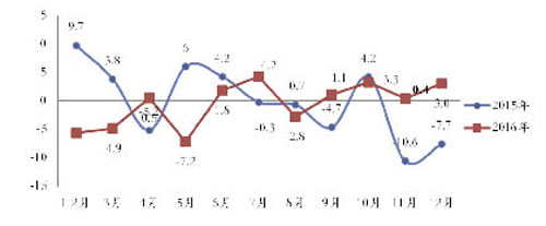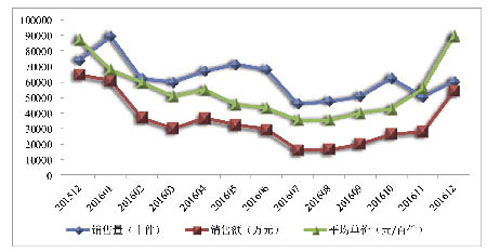 數據來源:中華全國商業信息中心 一線樣本:上海過渡平穩,進入深度調整期 2016年,一線城市服裝零售進入調整期。以上海為例,上海服裝行業協會網絡定期統計報表顯示,2016年十大商場實現服裝大類商品銷售收入達39.1億元,同比下降13.5%,總體累計銷售735.9萬件,同比下降11.4%,平均銷售價格為531.0元/件(套),同比下降2.4%。 2015年12月-2016年12月上海服裝銷售走勢