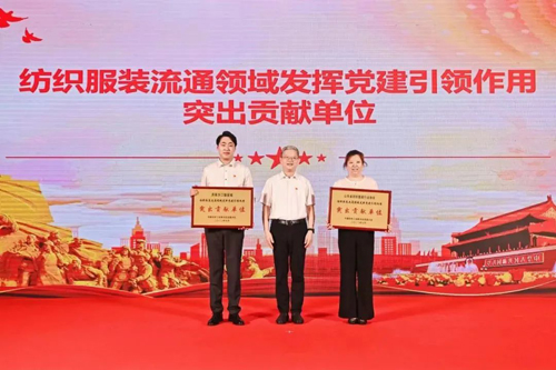 ![]() 本次活動上,中國紡織工業聯合會秘書長、流通分會會長夏令敏為山東省紡織服裝行業協會、濟南濼口服裝城頒發“紡織服裝流通領域發揮黨建引領作用突出貢獻單位”榮譽牌匾。