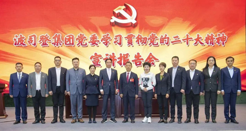 會(huì)上,周海江從黨的二十大會(huì)議盛況、二十大報(bào)告主要內(nèi)容及深入學(xué)習(xí)貫徹落實(shí)黨的二十大精神等多個(gè)方面為波司登全體黨員作了深入的解讀,并列舉剖析了黨的二十大報(bào)告中的一系列新專題、新論斷、新提法,同時(shí)結(jié)合紅豆集團(tuán)工作實(shí)際,分享了民營(yíng)企業(yè)學(xué)習(xí)貫徹落實(shí)黨的二十大精神的特色做法和經(jīng)驗(yàn)舉措,給波司登全體黨員作了一個(gè)生動(dòng)、深刻的報(bào)告,贏得了全場(chǎng)共鳴。